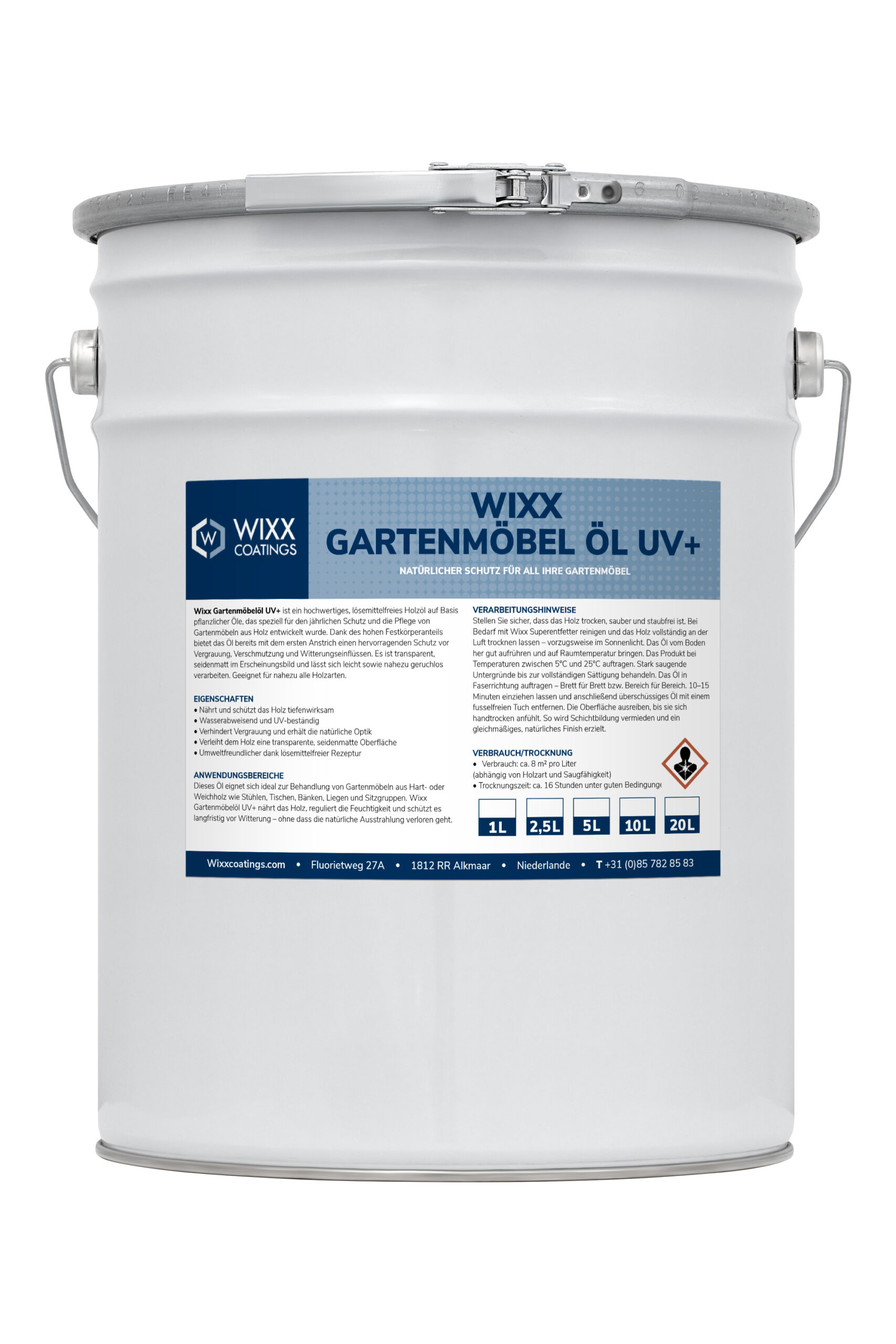 Wixx Gartenmöbel öl UV+ ist eine Rezeptur auf Basis verschiedener pflanzlicher Öle für den jährlichen Schutz und die Pflege Ihrer Holzteile. Dieses Gartenmöbelöl hat nämlich eine sehr hohe Ergiebigkeit und einen hohen Feststoffgehalt, wodurch bei der ersten Schicht eine ausgezeichnete Ergiebigkeit erzielt wird. Schützt zudem nahezu alle Holzarten für längere Zeit vor Verschmutzung oder Vergrauung. Wixx Gartenmöbelöl lässt sich daher sehr einfach verarbeiten.