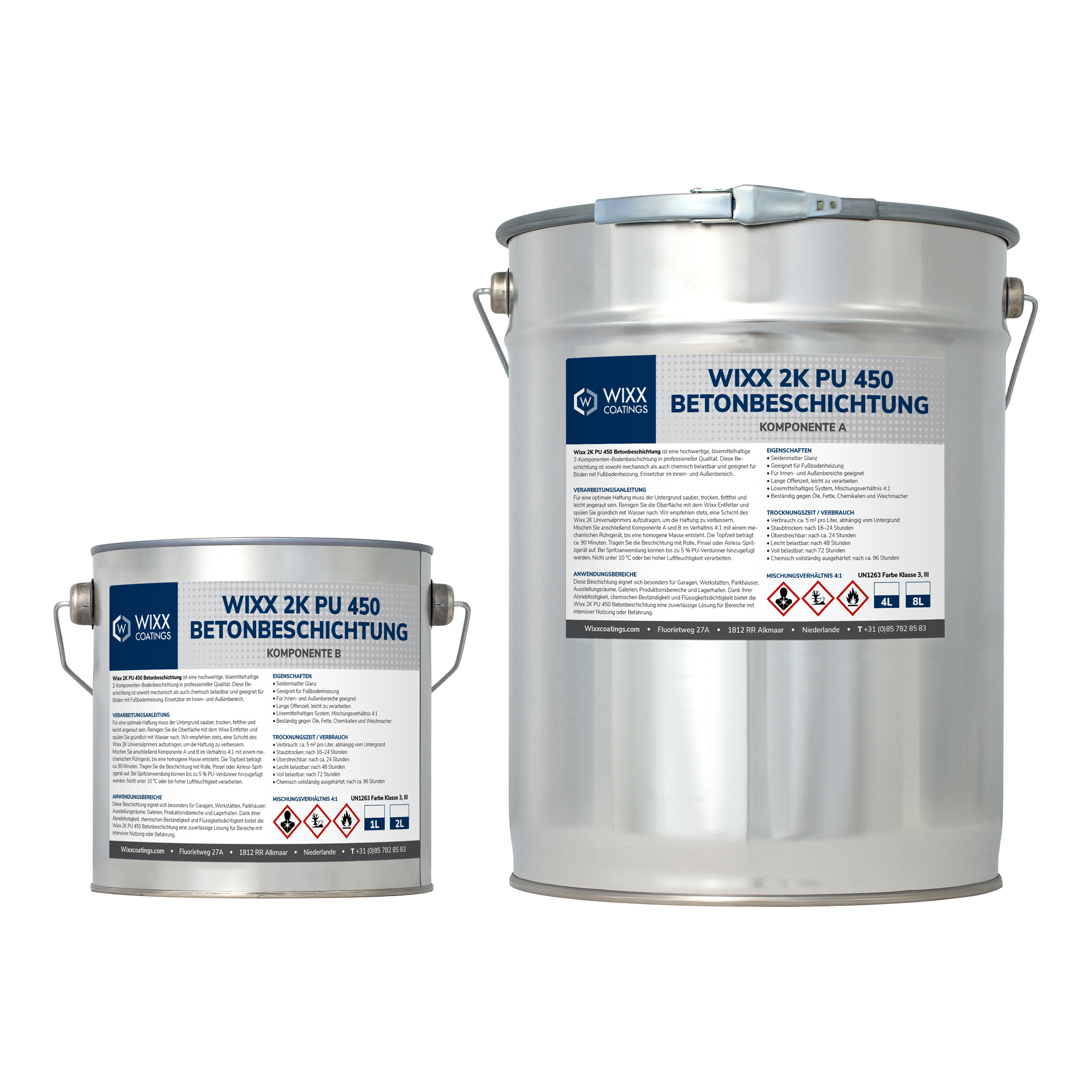 Wixx 2k PU 450 Betonbeschichtung ist eine hochwertige 2-Komponenten lösemittelhaltige Betonbeschichtung, die speziell für mechanische und chemische Belastungen entwickelt wurde. Diese professionelle Betonbeschichtung ist für Fußbodenheizung geeignet und kann sowohl im Innen- als auch im Außenbereich angewendet werden. Daher ist diese Betonbeschichtung hervorragend geeignet für: