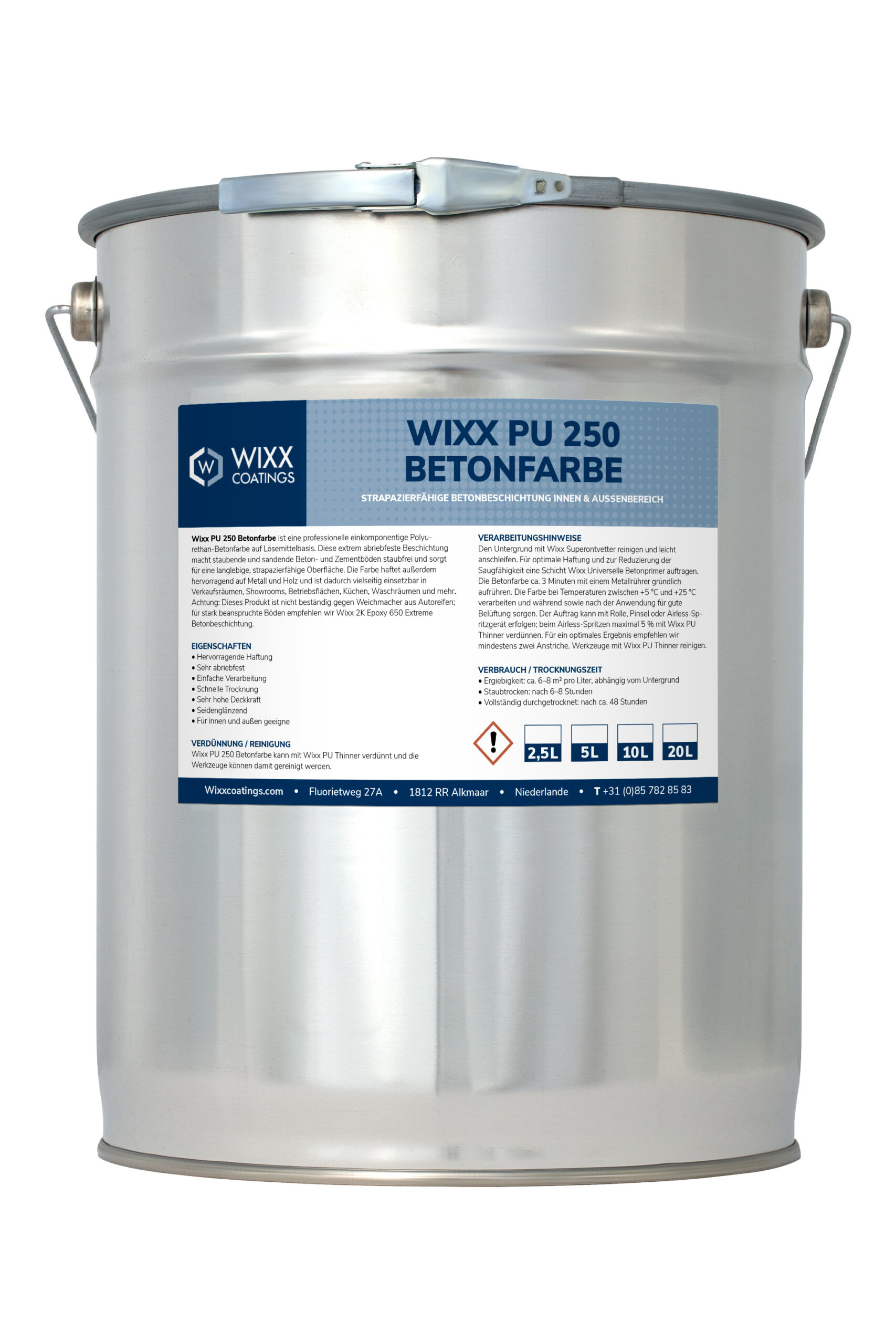 Wixx PU 250 Betonfarbe Außen und Innen kann mit Wixx PU Thinner verdünnt und gereinigt werden.