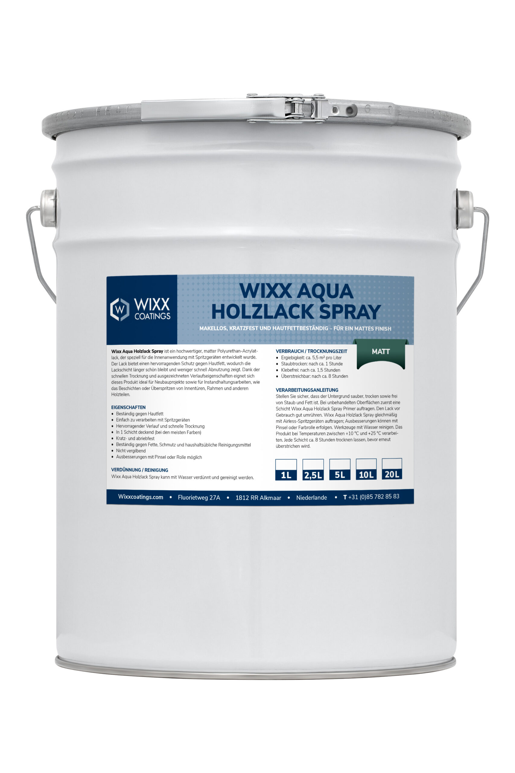 Wixx Aqua Holzlack Spray matt ist eine hochwertige, matte Lackfarbe für Innenräume, speziell für die Sprühanwendung entwickelt. Diese Farbe ist nämlich auf Basis von Polyurethan-Acrylat und bietet zudem ausgezeichneten Schutz gegen Hautfett, wodurch die Farbschicht länger schön bleibt.