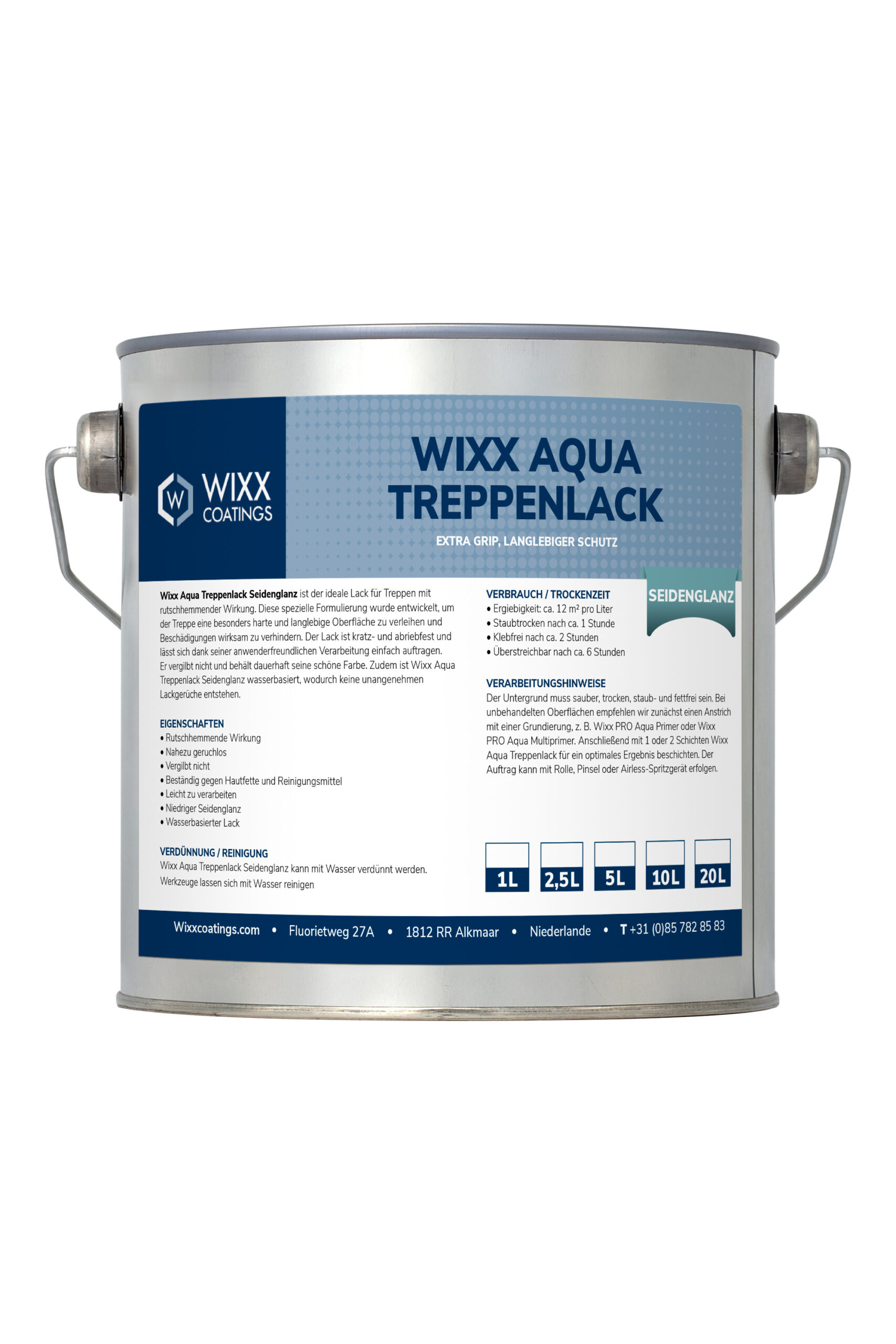 Sie müssen sich keine Sorgen über Vergilbung machen, denn dieser Treppenlack behält seine schöne Farbe. Darüber hinaus ist Wixx Aqua Treppenlack seidenglänzend auf Wasserbasis, was bedeutet, dass Sie keine unangenehmen Farbgerüche haben.
