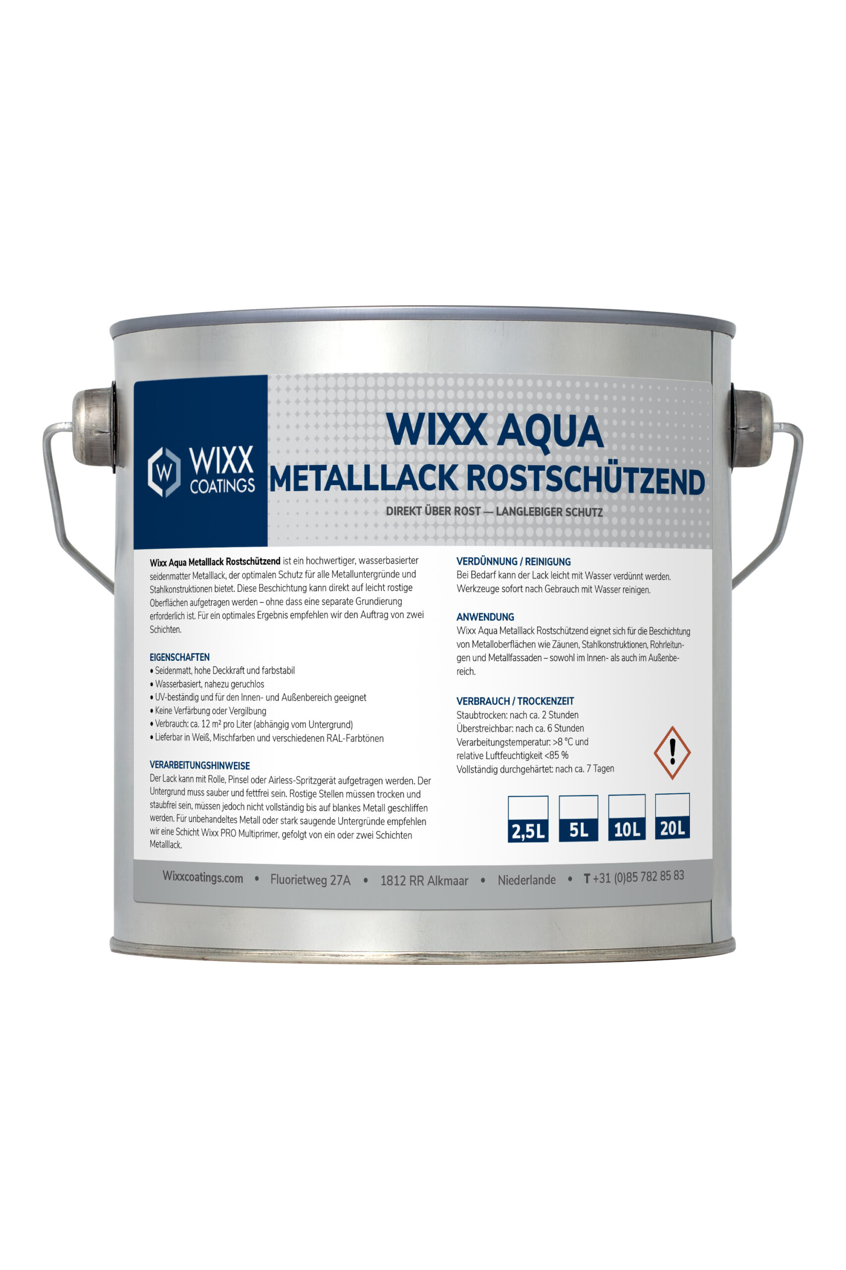 Wixx Metalllack Aqua rostschützend ist eine hochwertige, wasserbasierte halbglänzende Beschichtung, die nämlich optimalen Schutz für alle Metalluntergründe und Stahlkonstruktionen bietet. Dieser Metalllack kann zudem direkt auf leicht rostige Untergründe aufgetragen werden — ohne dass eine separate Grundierung erforderlich ist. Für das beste Ergebnis empfehlen wir das Auftragen von zwei Schichten.