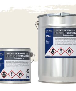 Wixx 2K Epoxy 650 Extreme betoncoating epoxy (2 lagen) vormt in combinatie met de Wixx 2K Universele primer (1 laag) een sterke epoxyvloer die dagelijks zwaar belast kan worden met onder andere oliën, vetten, chemicaliën en weekmakers van autobanden. Bovendien is de Wixx 2K Epoxy 650 Extreme betoncoating epoxy bijzonder slijtvast. Dit product kan namelijk op diverse ondergronden gebruikt worden zoals beton, zandcement, metaal en hout.