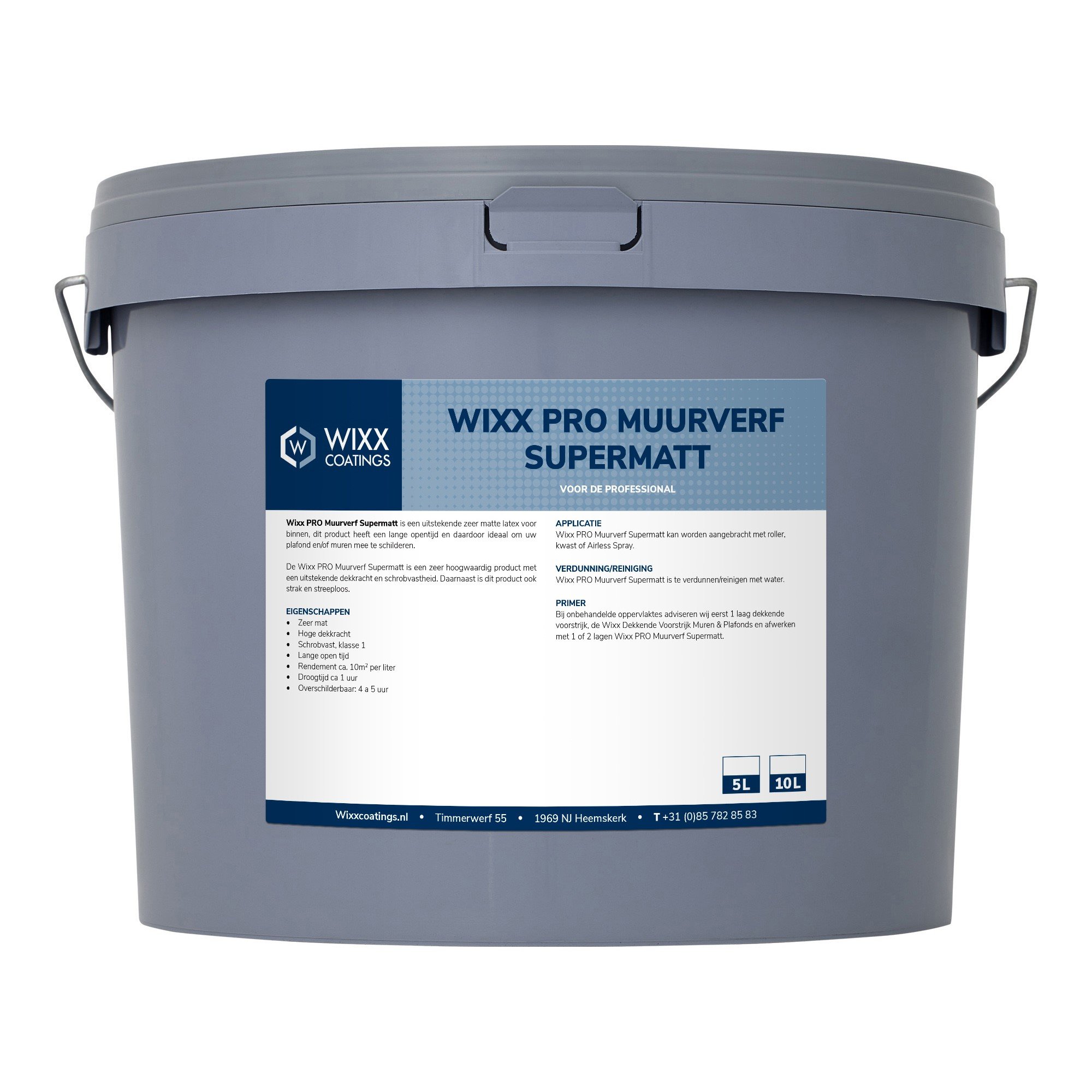Wixx PRO Muurverf Supermatt is een uitstekende zeer matte latex voor binnengebruik. Dit product heeft een lange opentijd en daarom schildert u ideaal uw plafond en/of muren ermee.